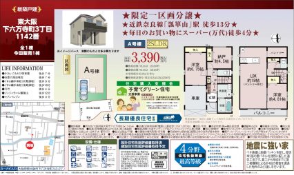 新築戸建 【No.15393】 【新生活応援キャンペーン開催中!】東大阪市池島町2丁目(1期)■全3邸【近鉄奈良線「瓢箪山」駅】