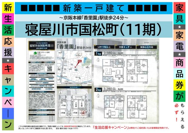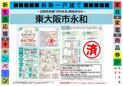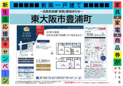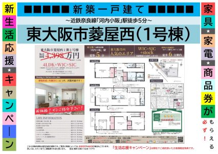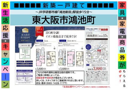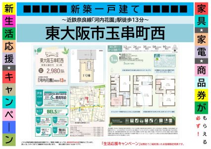 新築戸建 【No.15629】 【新生活応援キャンペーン開催中!】東大阪市鴻池町(1期)■全2邸【JR学研都市線「鴻池新田」駅】