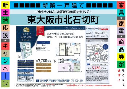 新築戸建 【No.14401】 【新生活応援キャンペーン開催中!】東大阪市北石切町(2期)■全4邸【近鉄けいはんな線「新石切」駅】