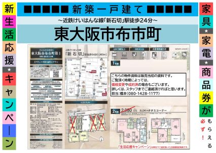 新築戸建 【No.14771】 【新生活応援キャンペーン開催中!】東大阪市布市町(1期)■全6邸【近鉄けいはんな線「新石切」駅】