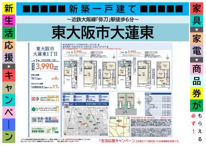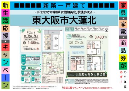 新築戸建 【No.15472】 【新生活応援キャンペーン開催中!】東大阪市大蓮北4丁目■全5邸【JRおおさか東線「衣摺加美北」駅】