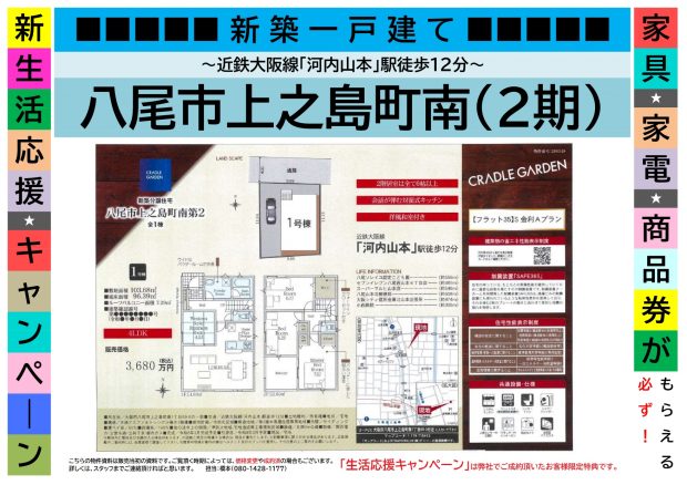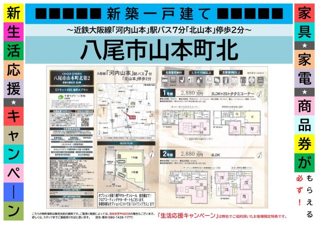 新築戸建 【No.15538】 【新生活応援キャンペーン開催中!】八尾市山本町北(2期)■全2邸【近鉄大阪線「河内山本」駅】