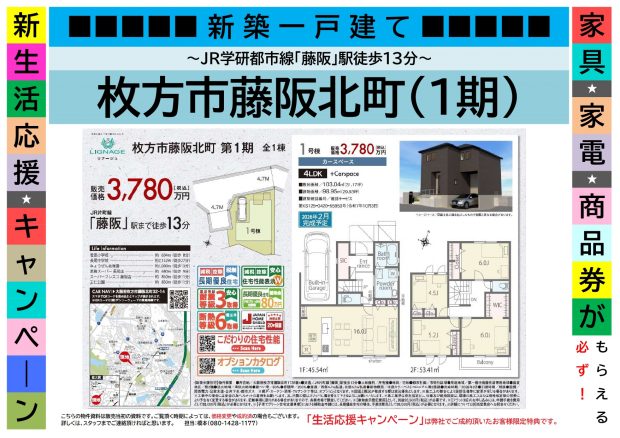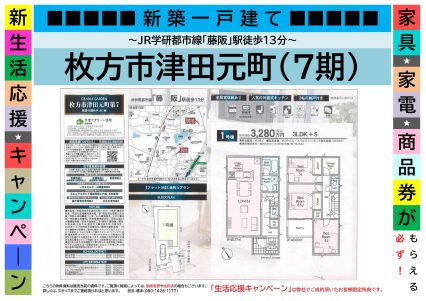 新築戸建 【No.15516】 【新生活応援キャンペーン開催中!】枚方市津田元町2丁目(7期)■全1邸【JR学研都市線「藤阪」駅】