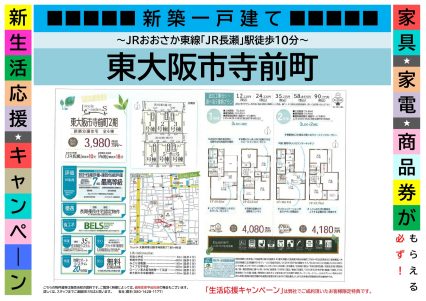 新築戸建 【No.15577】 【新生活応援キャンペーン開催中!】東大阪市寺前町(2期)■全6邸【JRおおさか東線「JR長瀬」駅】