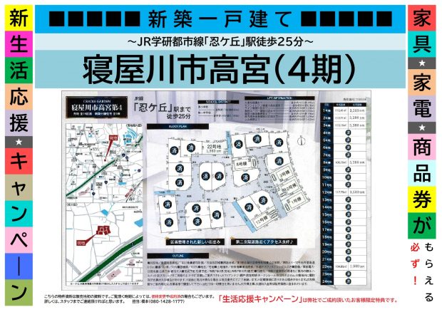新築戸建 【No.15549】 【新生活応援キャンペーン開催中!】寝屋川市高宮(4期)■全24邸【JR学研都市線「忍ヶ丘」駅】