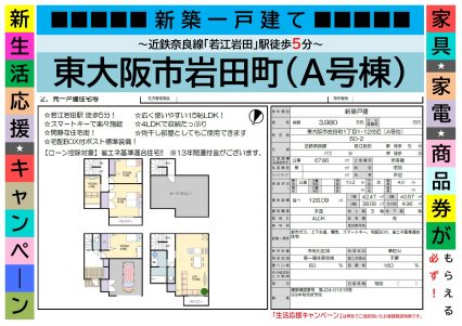 新築戸建 【No.15728】 【新生活応援キャンペーン開催中!】東大阪市岩田町1丁目■(全7区画)【近鉄奈良線「若江岩田」駅】
