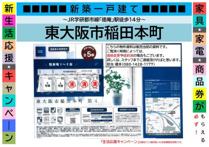 新築戸建 【No.15365】 【新生活応援キャンペーン開催中!】東大阪市稲田本町1丁目(4期)■全5邸【JR学研都市線「徳庵」駅】