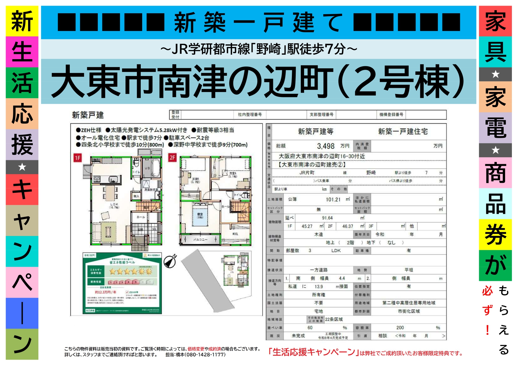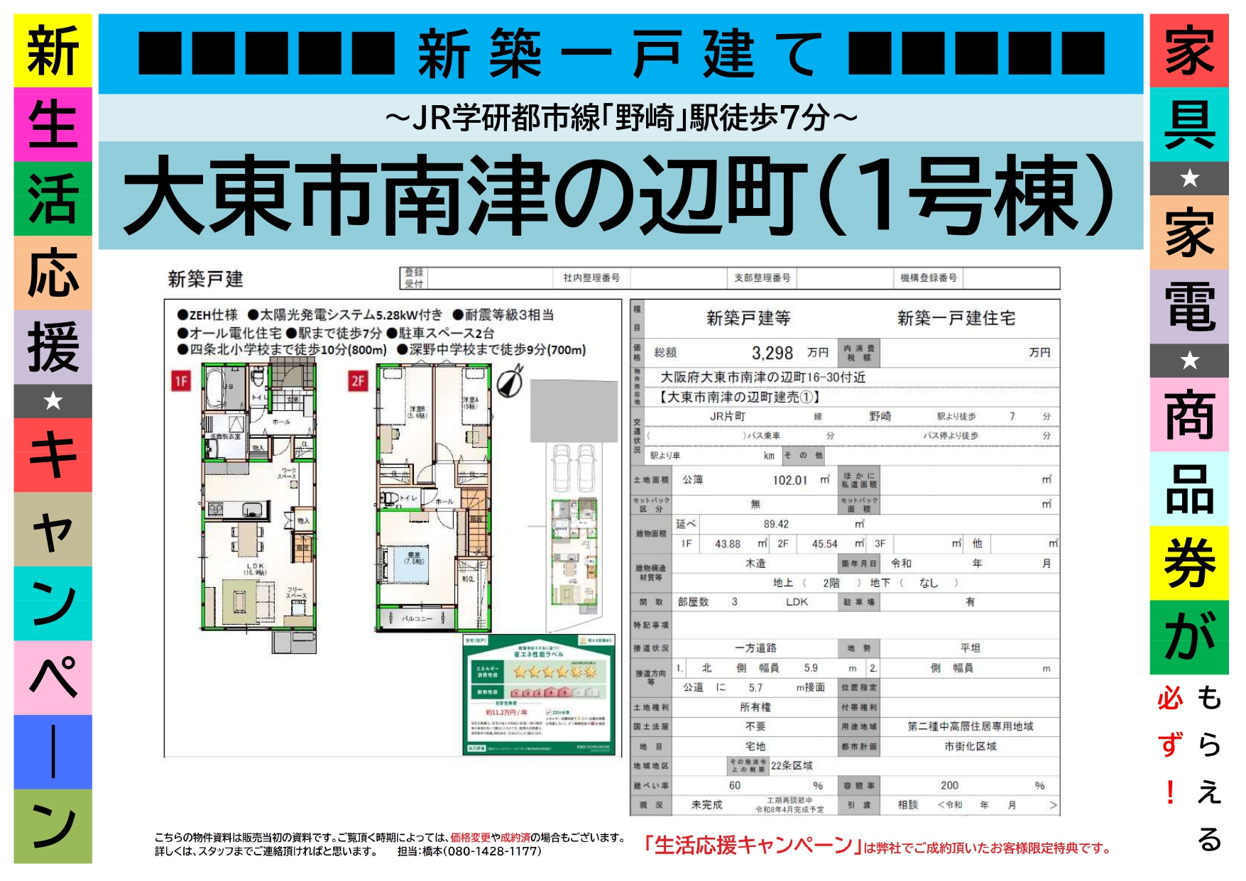 新築戸建【No.15882】 【太陽光発電システム付き】大東市南津の辺町■(全2区画)【JR学研都市線「野崎」駅】