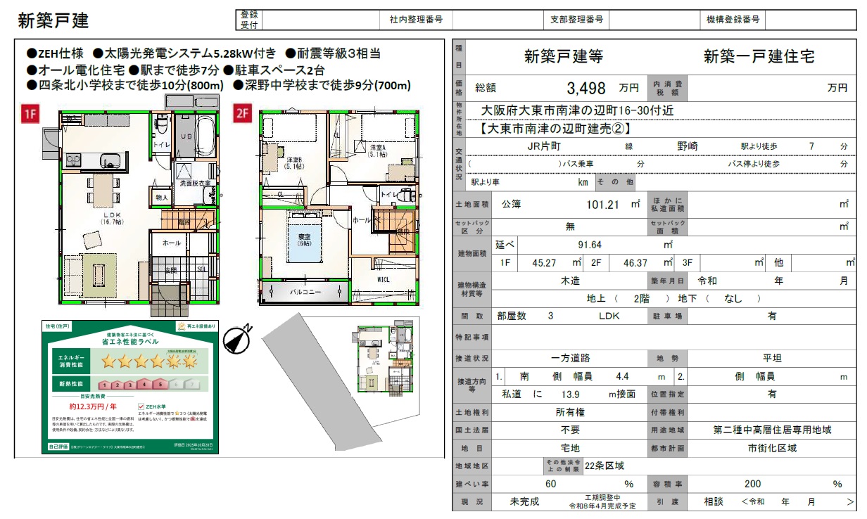 • (2号棟)3498万円/土地:101.21㎡/建物:91.64㎡