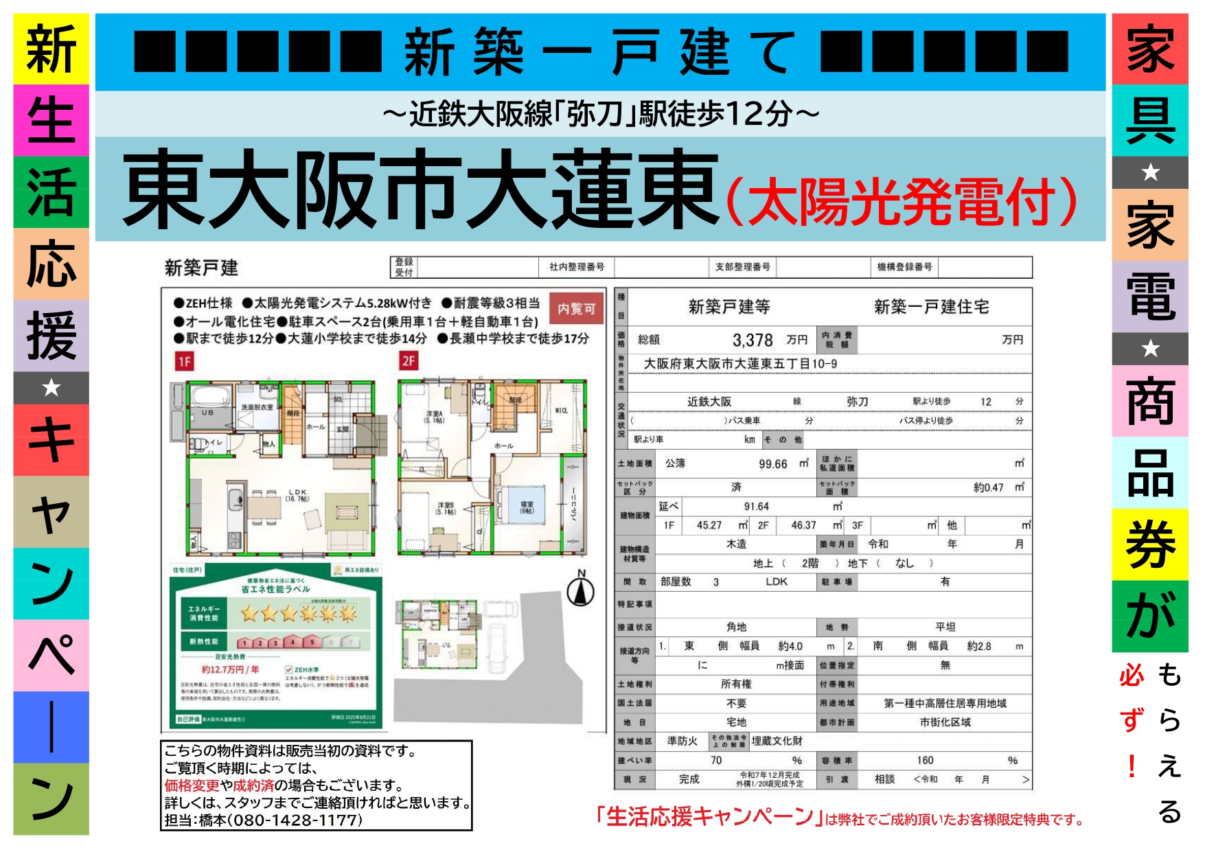 新築戸建【No.15887】 【太陽光発電システム付き】東大阪市大蓮東5丁目■(限定1区画)【近鉄大阪線「弥刀」駅】