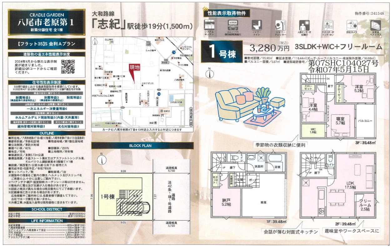 新築戸建【No.15532】 クレイドルガーデン八尾市老原(1期)■全1邸【JR大和路線「志紀」駅】