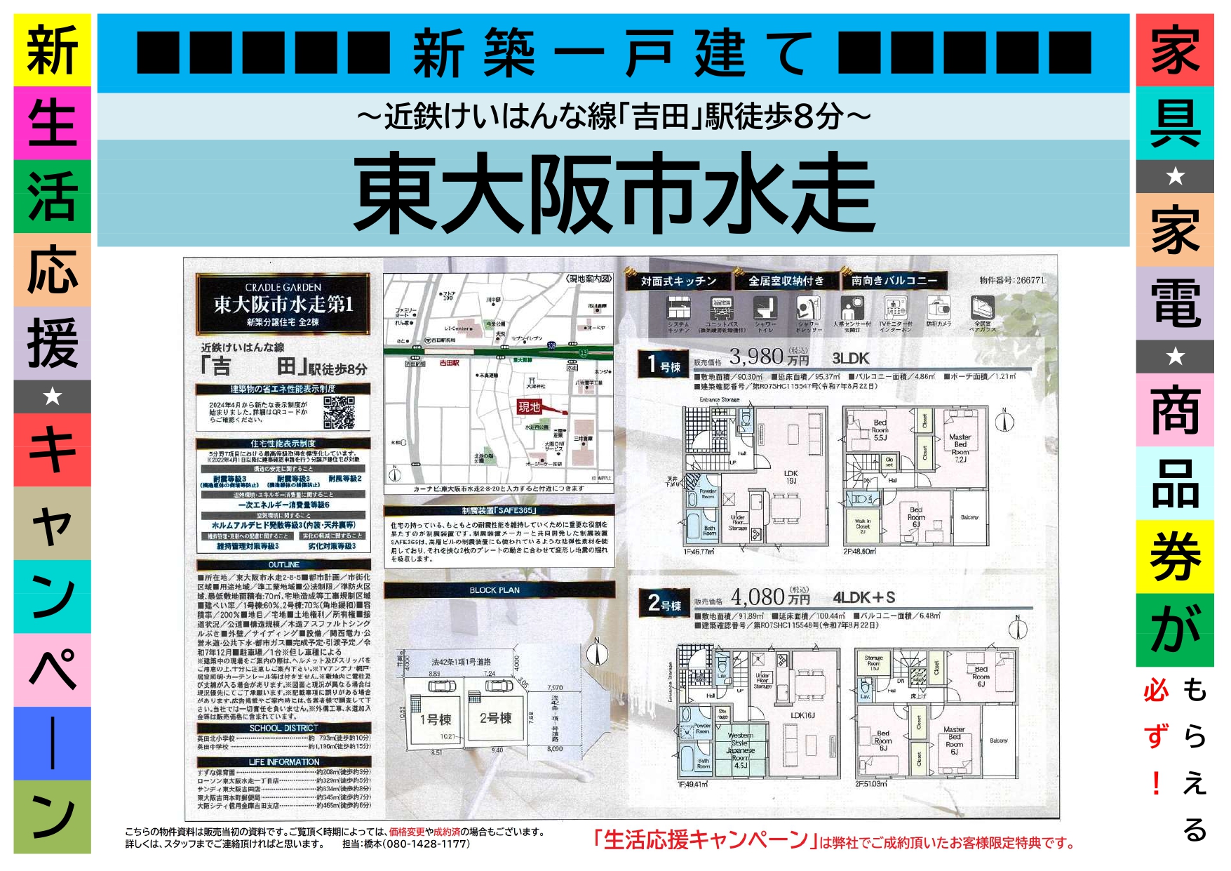 新築戸建【No.15544】 クレイドルガーデン東大阪市水走(1期)■全2邸【近鉄けいはんな線「吉田」駅】