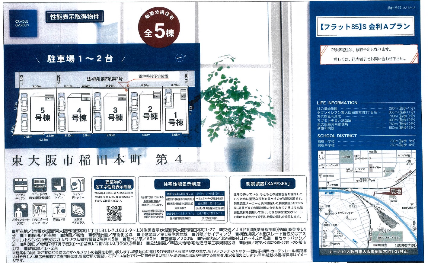 新築戸建【No.15365】 クレイドルガーデン東大阪市稲田本町1丁目(4期)■全5邸【JR学研都市線「徳庵」駅】