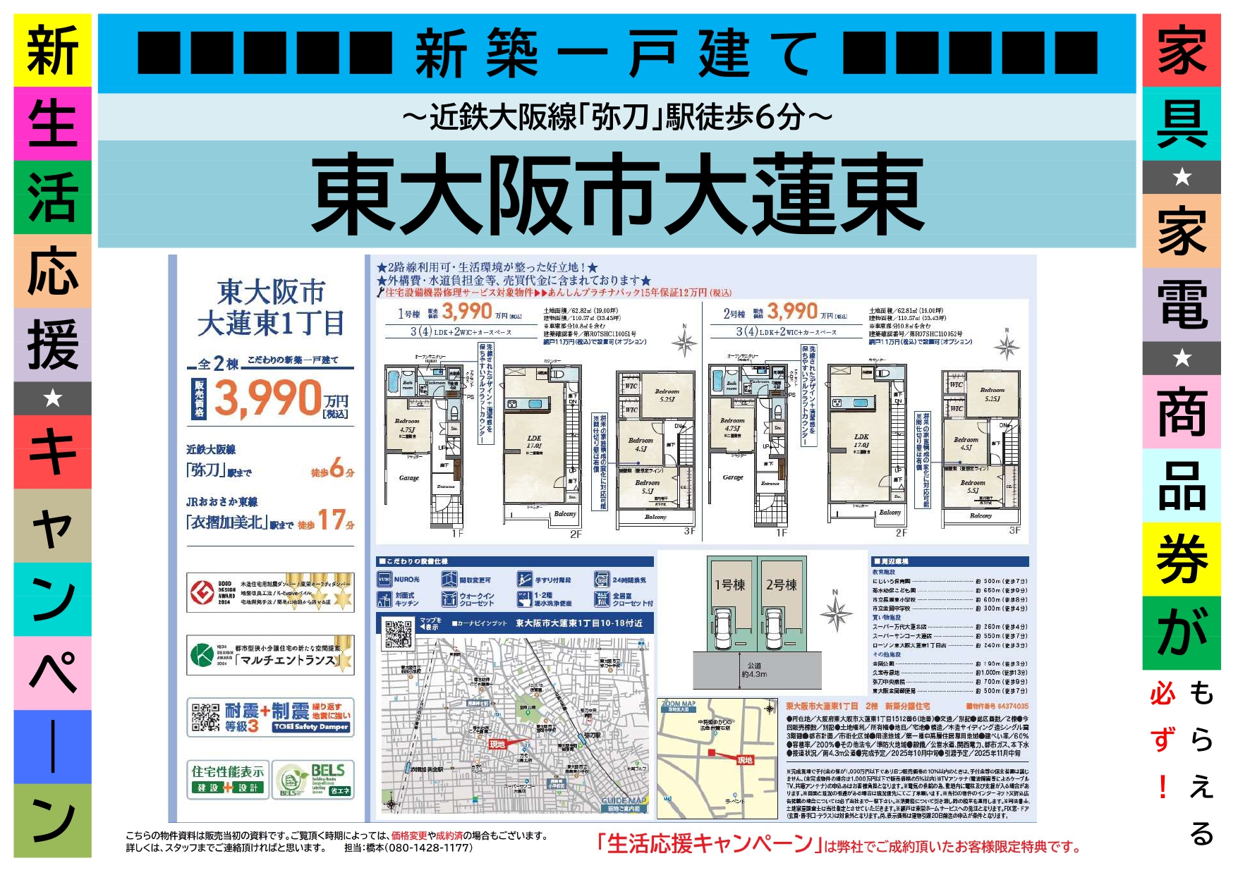 新築戸建【No.15439】 ブルーミングガーデン東大阪市大蓮東1丁目■全2邸【近鉄大阪線「弥刀」駅】