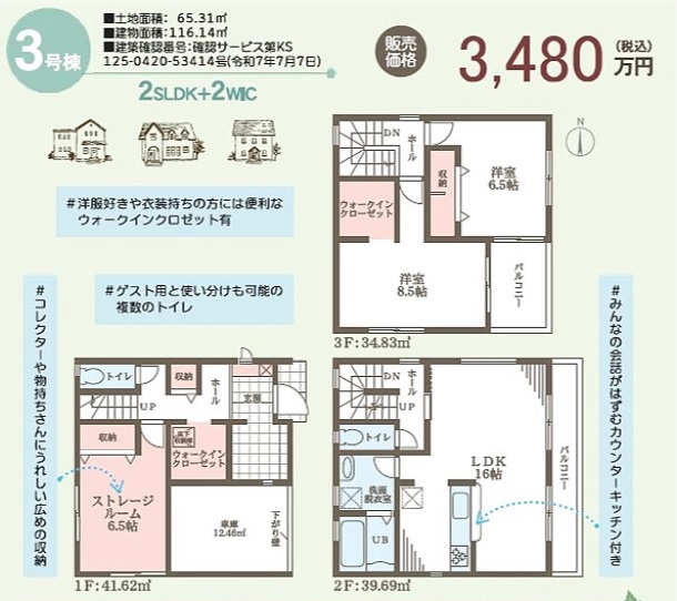 物件価格 | 3,480万円〜3,580万円83,462円〜 |