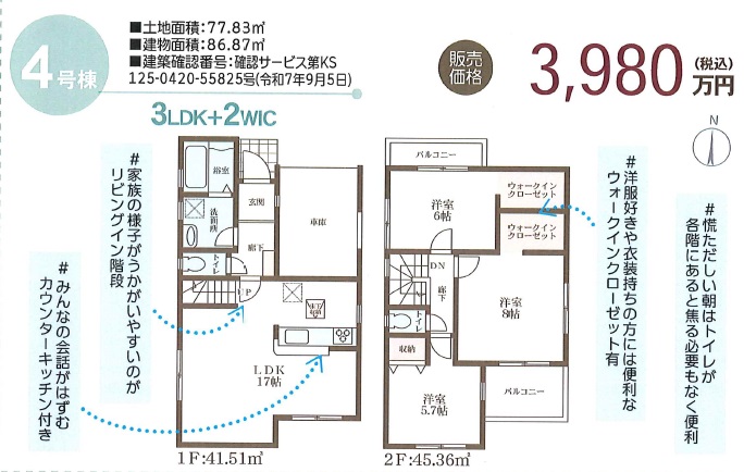 | 物件価格 | 3,980万円〜4,180万円95,453円〜 |
