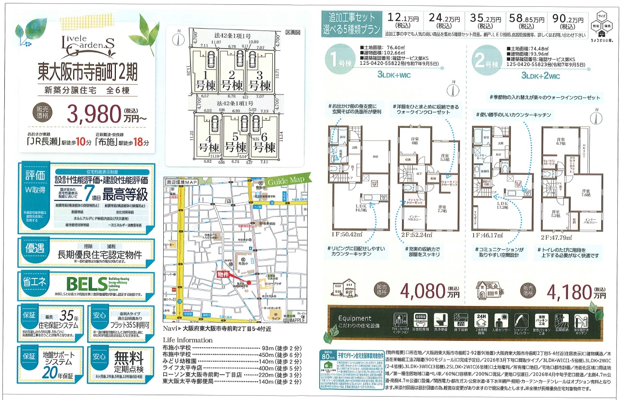 新築戸建【No.15577】 リーブルガーデン東大阪市寺前町(2期)■全6邸【JRおおさか東線「JR長瀬」駅】