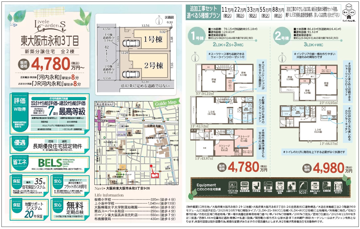 新築戸建【No.15479】 リーブルガーデン東大阪市永和3丁目■全2邸【近鉄奈良線「河内永和」駅】
