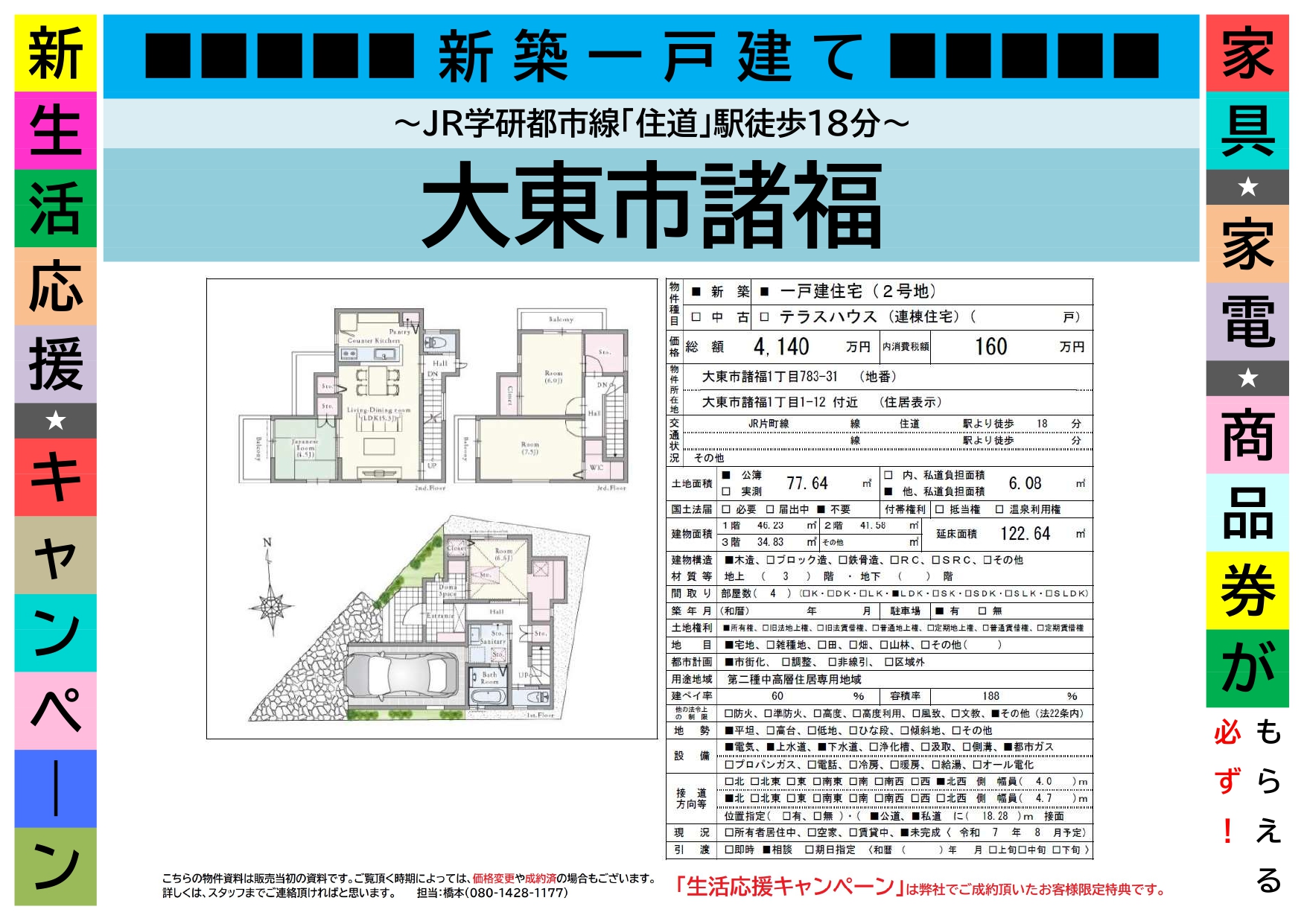 | 交通 | JR学研都市線「住道」駅徒歩18分 |